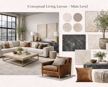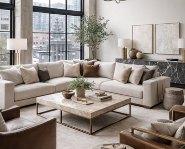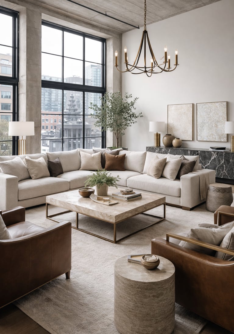 A refined urban loft designed to balance warmth and structure. Soft neutrals, layered textures, and sculptural furnishings create a space that feels elevated yet livable. Natural light, mixed materials, and thoughtful scale work together to bring comfort and cohesion to an open-concept setting proof that luxury can still feel relaxed and intentional.