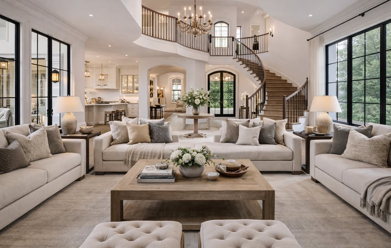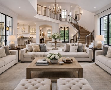 The Willow Crest Estate was designed to balance scale, symmetry, and warmth. Soft neutrals, layered textures, and refined architectural details create an interior that feels both grand and inviting. Open sightlines, elegant lighting, and thoughtfully curated furnishings support effortless living while maintaining a timeless, elevated presence throughout the home.